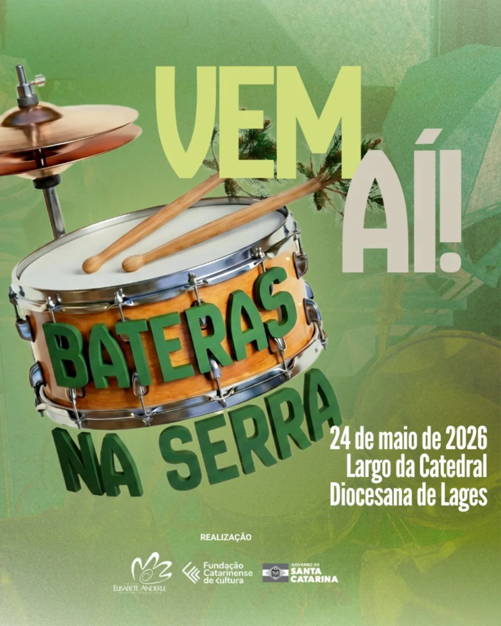 O Largo da Catedral Diocesana de Lages será palco de uma performance sonora inédita no dia 24 de maio. O projeto Bateras na Serra promoverá uma apresentação coletiva reunindo dezenas de bateristas e percussionistas em um espetáculo ao ar livre, acompanhados por uma banda de músicos renomados do estado.
