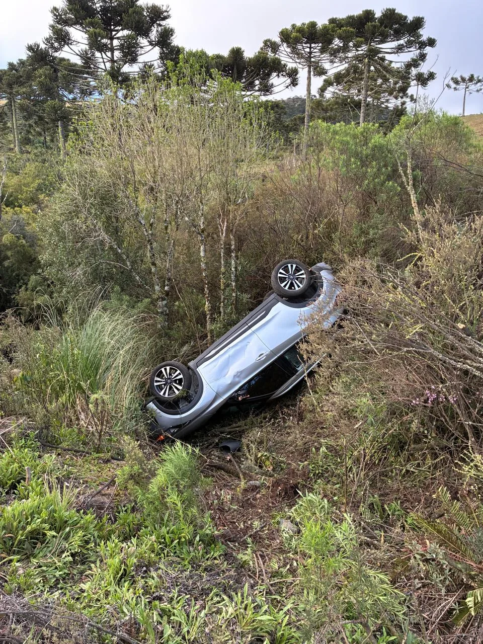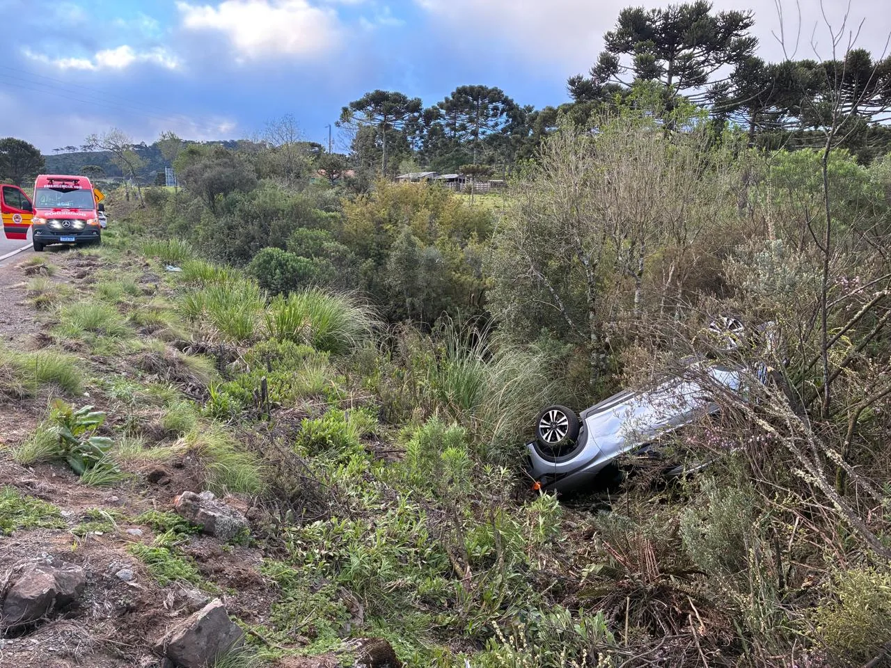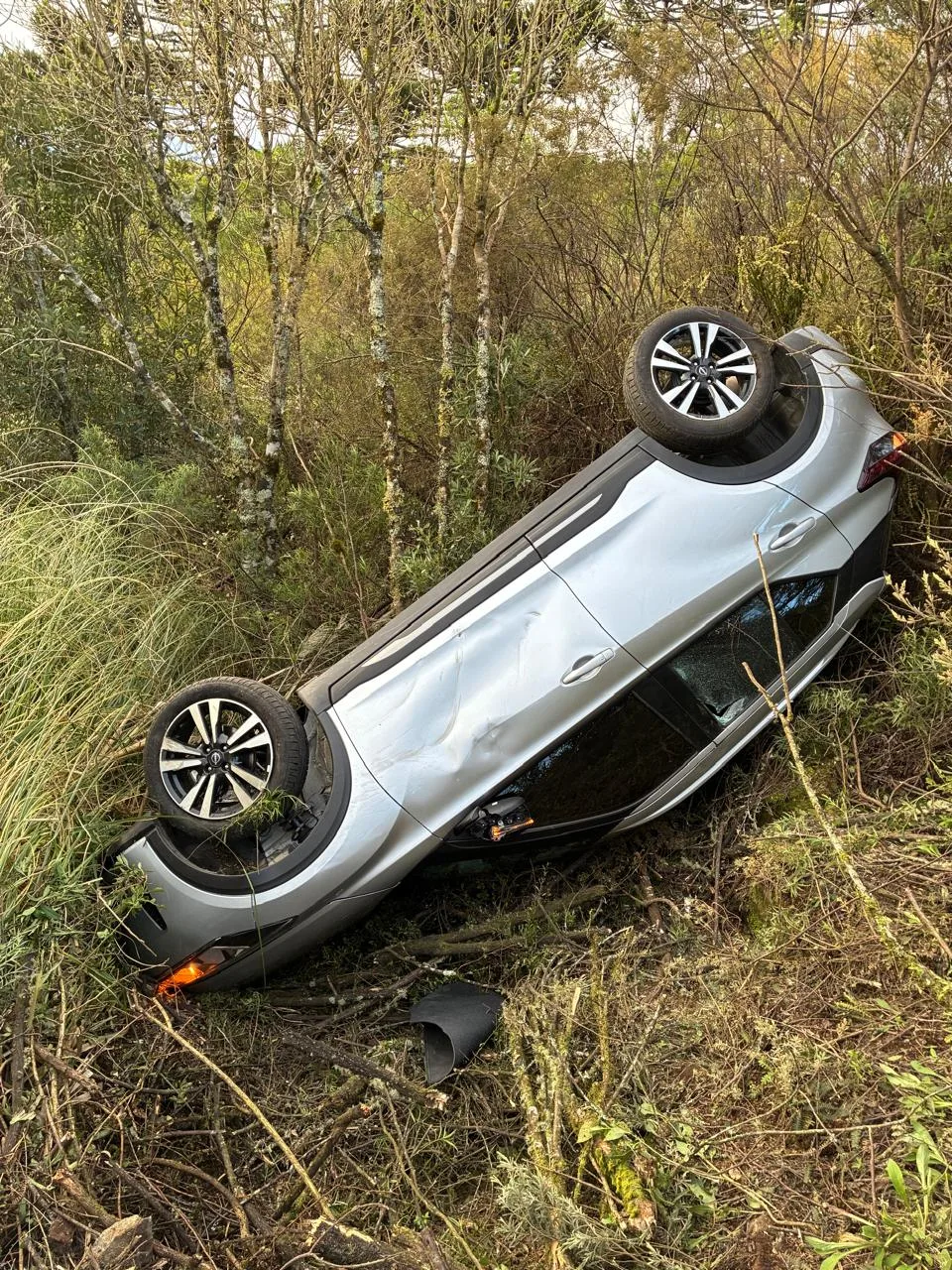 Motorista perde controle em curva e carro capota na Serra Catarinense