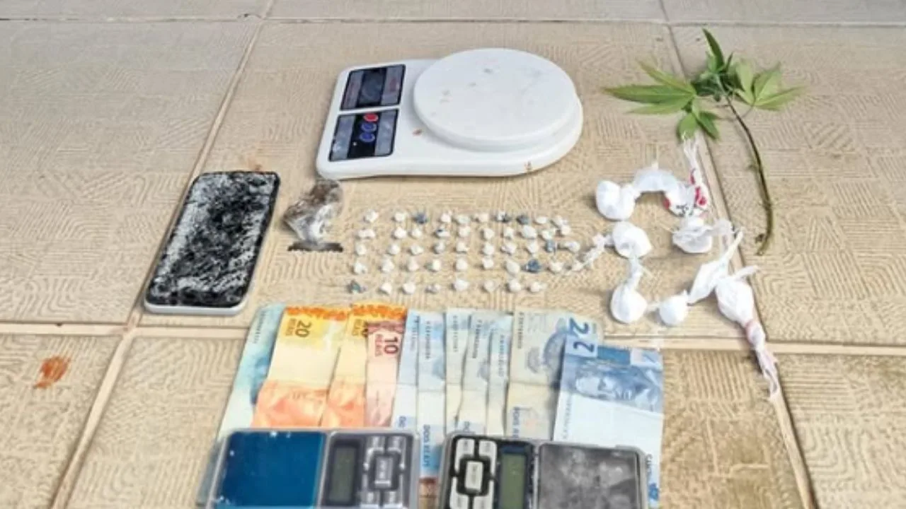 A guarnição foi acionada via COPOM e deslocou-se até o endereço apontado pelo GPS, um local já conhecido pelas autoridades por suspeita de comércio de ilícitos. Ao notar a chegada das viaturas, um homem tentou fugir para o interior de uma residência, mas foi interceptado pelos policiais.