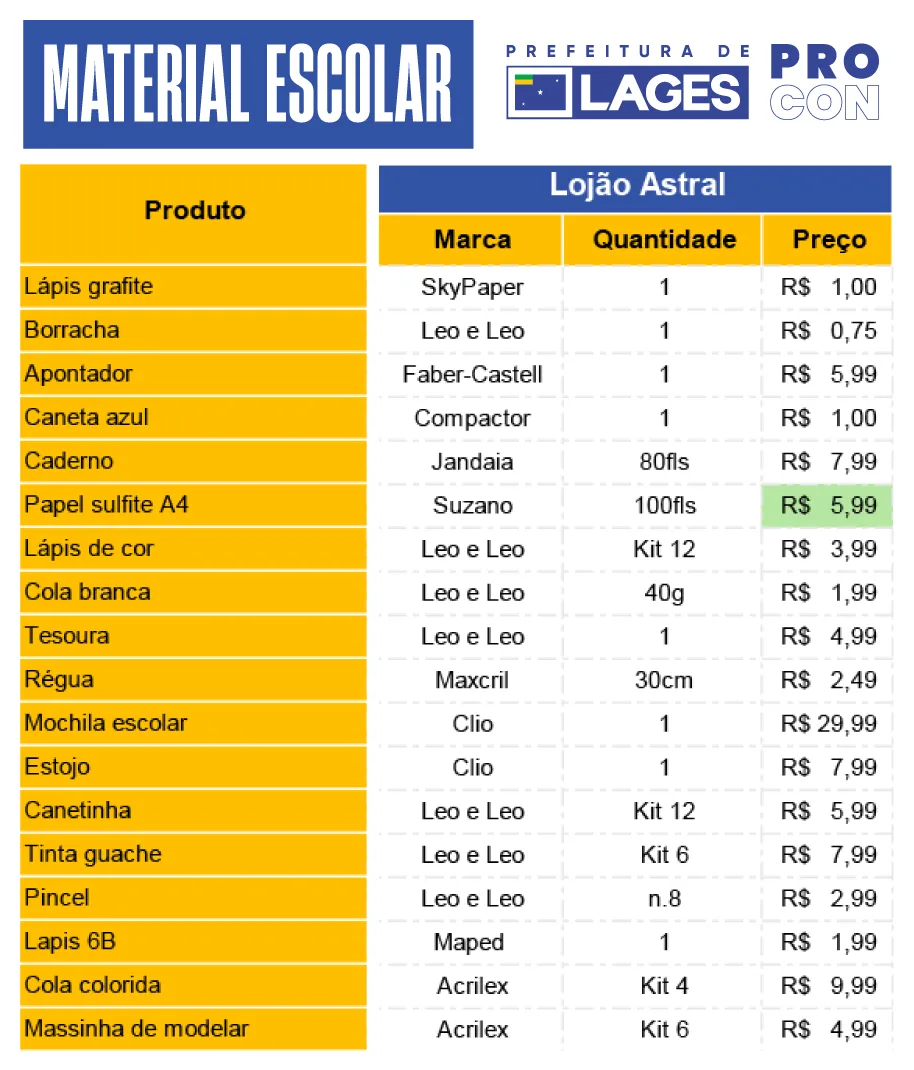Com a proximidade do ano letivo de 2026, o Procon de Lages divulgou, nesta semana, um levantamento detalhado de preços de materiais escolares para auxiliar as famílias na economia doméstica. Paralelamente, a Secretaria Municipal da Educação anunciou que os 15 mil alunos da rede pública municipal receberão kits completos e mochilas no primeiro dia de aula.