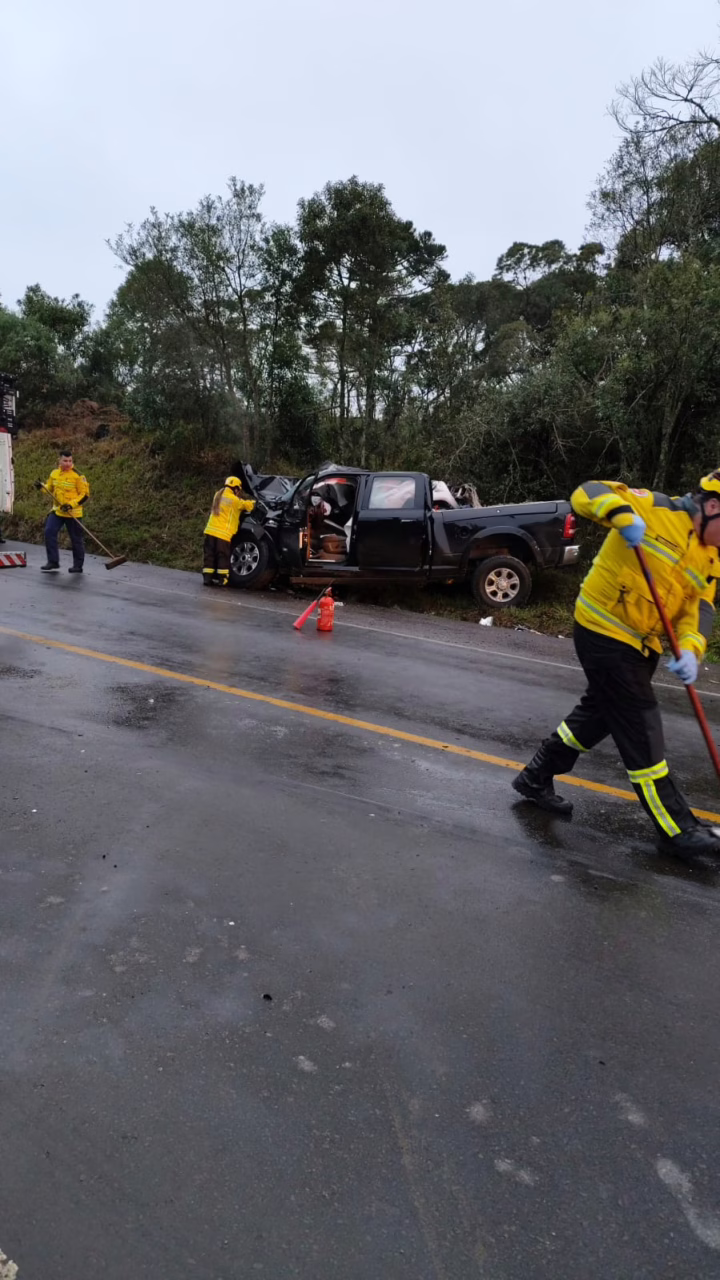 Equipes do Corpo de Bombeiros de Curitibanos e da Polícia Rodoviária Federal estão no local prestando atendimento e investigando as causas do acidente.