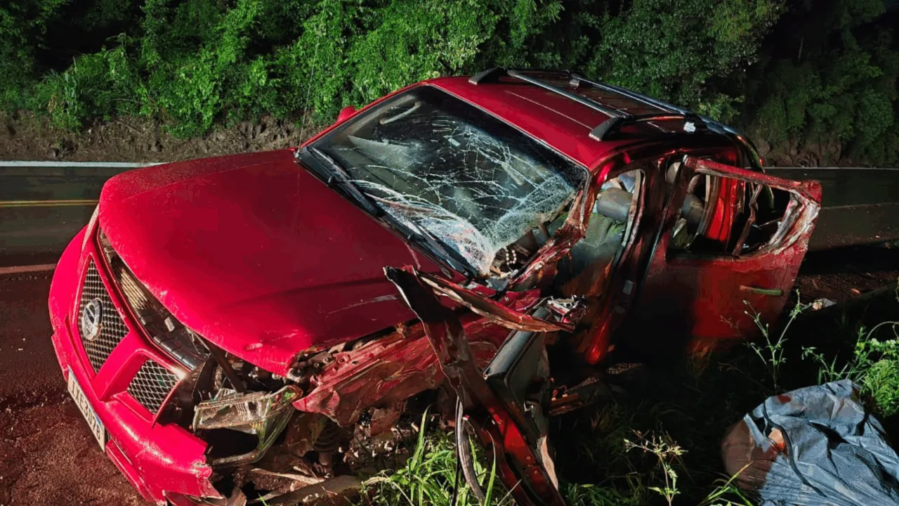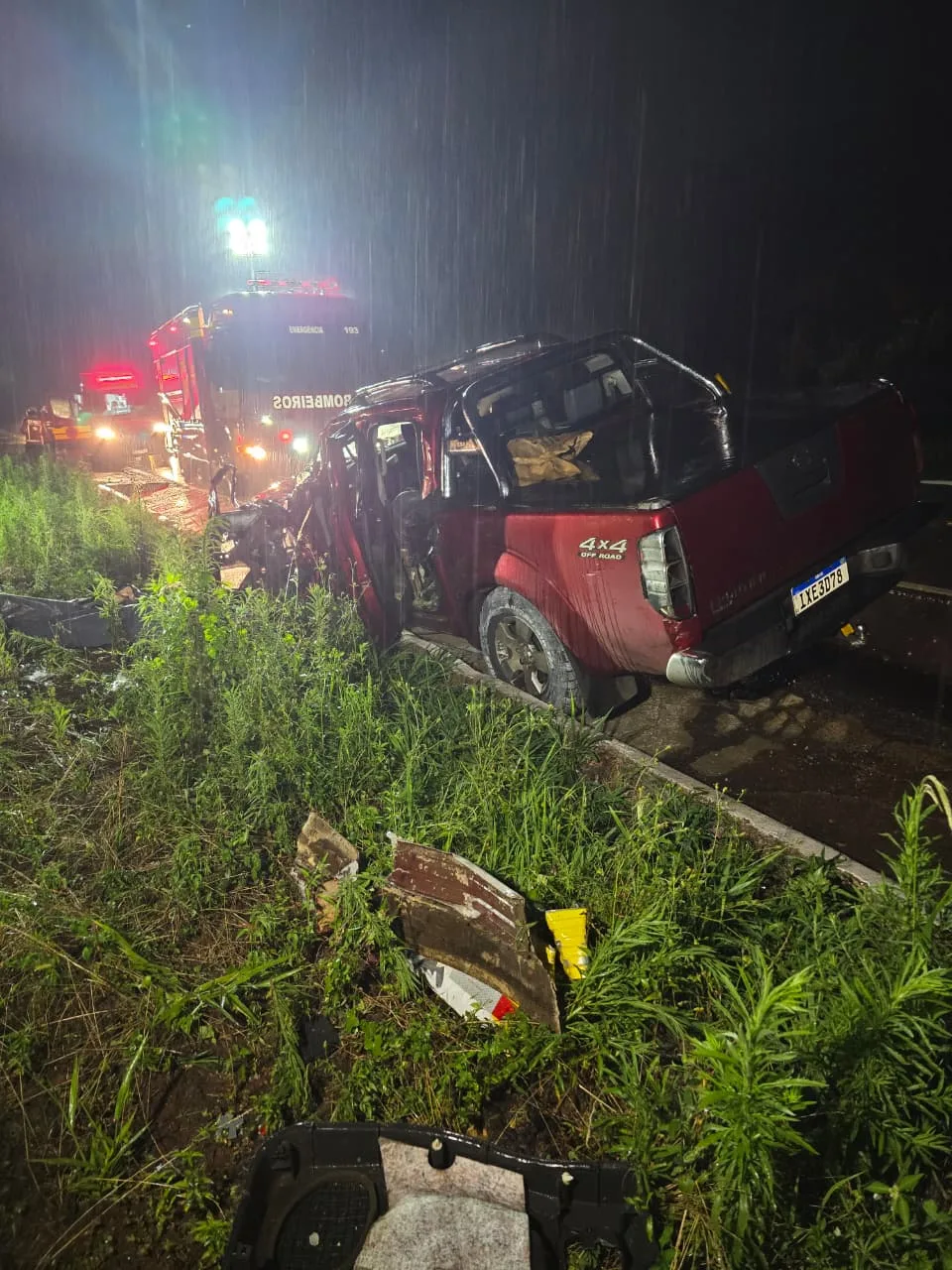 Na caminhonete, havia duas vítimas. Uma mulher foi localizada consciente, orientada, com sinais vitais estáveis e sem ferimentos. Já o condutor da caminhonete, um homem, foi encontrado preso às ferragens e inconsciente, tendo a morte constatado ainda no local do acidente na BR-282. A guarnição realizou o desencarceramento da vítima.