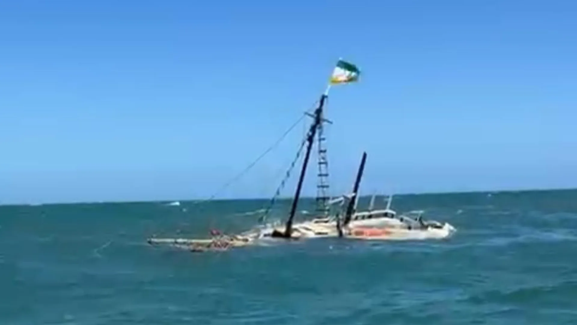 Barco com cinco tripulantes afunda no litoral de SC; veja vídeo