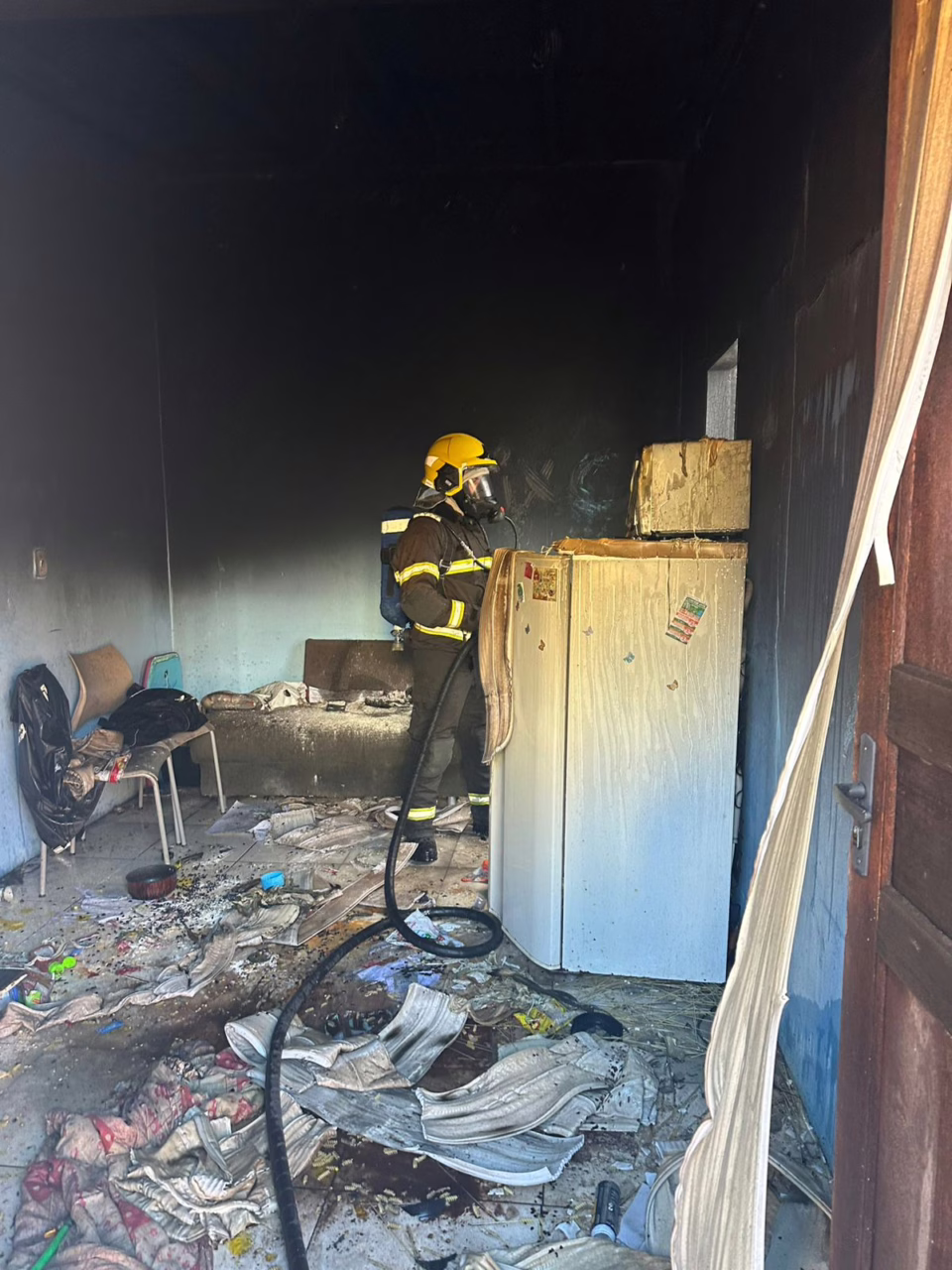 Ao chegarem ao local, os bombeiros confirmaram que duas das quatro kitnets de uma edificação térrea estavam em chamas. As equipes iniciaram imediatamente o combate ao fogo para impedir que as chamas se alastrassem para as demais unidades.