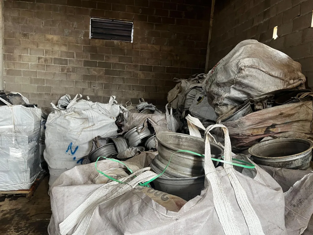 Durante a ação, o motorista conseguiu fugir, mas três pessoas foram presas dentro do depósito, onde também foram encontradas outras sucatas, entre elas baterias de veículos, chumbo e rodas de alumínio.