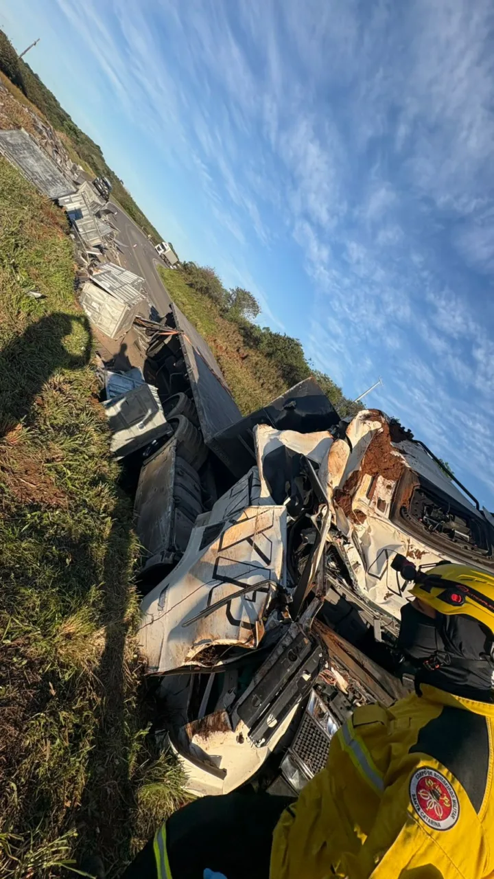 Segundo informações do Corpo de Bombeiros Militar de Santa Catarina (CBMSC), a vítima era a condutora do veículo. Ela foi encontrada dentro da cabine, consciente, porém com confusão mental, e presa às ferragens (encarceramento tipo 2).
