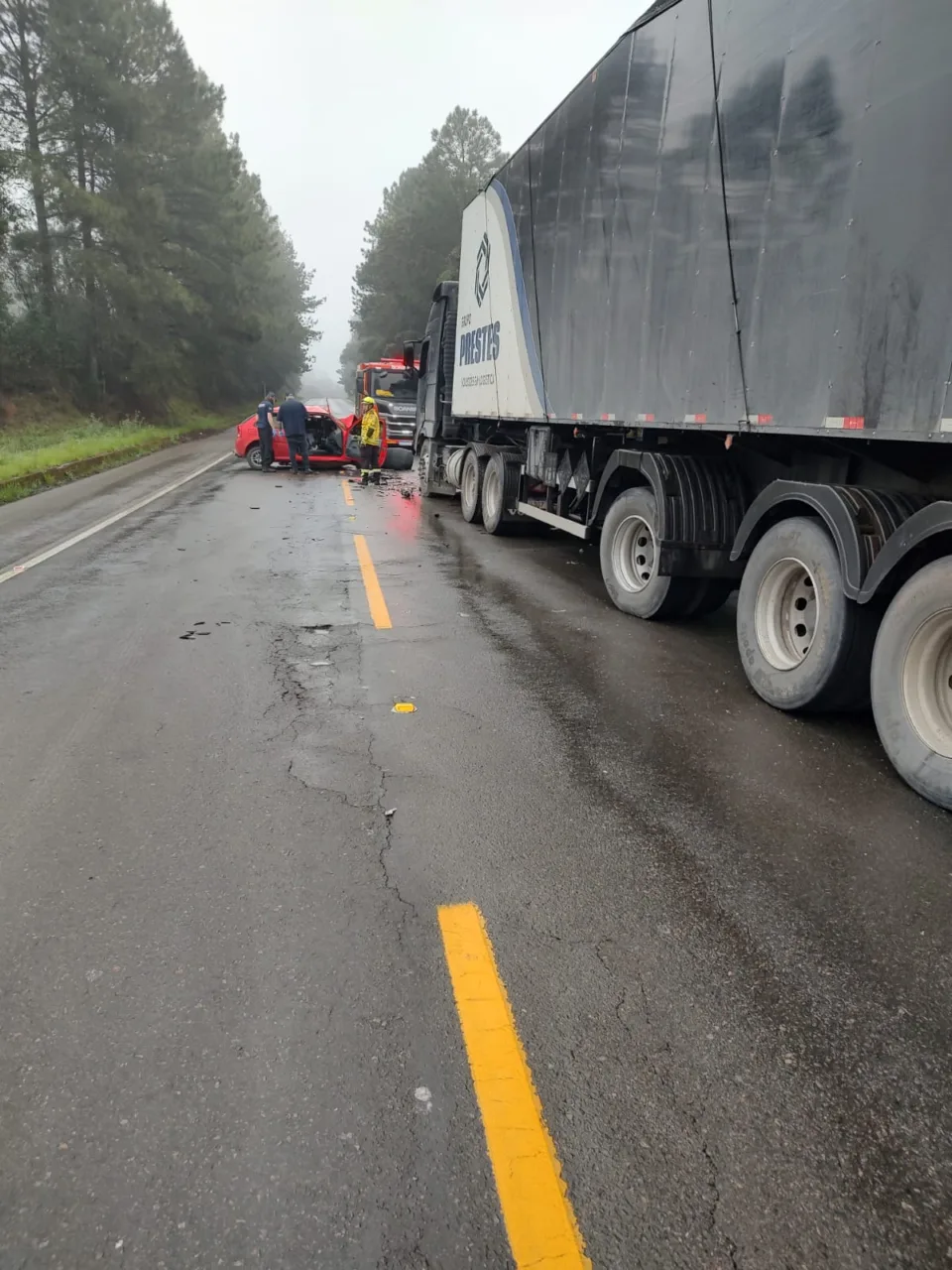 O condutor de um VolksWagen Gol vermelho morreu no local. O passageiro, que se apresentou como filho do motorista, ficou preso às ferragens e sofreu ferimentos graves no rosto, cabeça e abdômen, além de dificuldade para respirar. Ele foi retirado com segurança pelas equipes de resgate e encaminhado para o Hospital e Maternidade Sagrada Família, em São Bento do Sul.