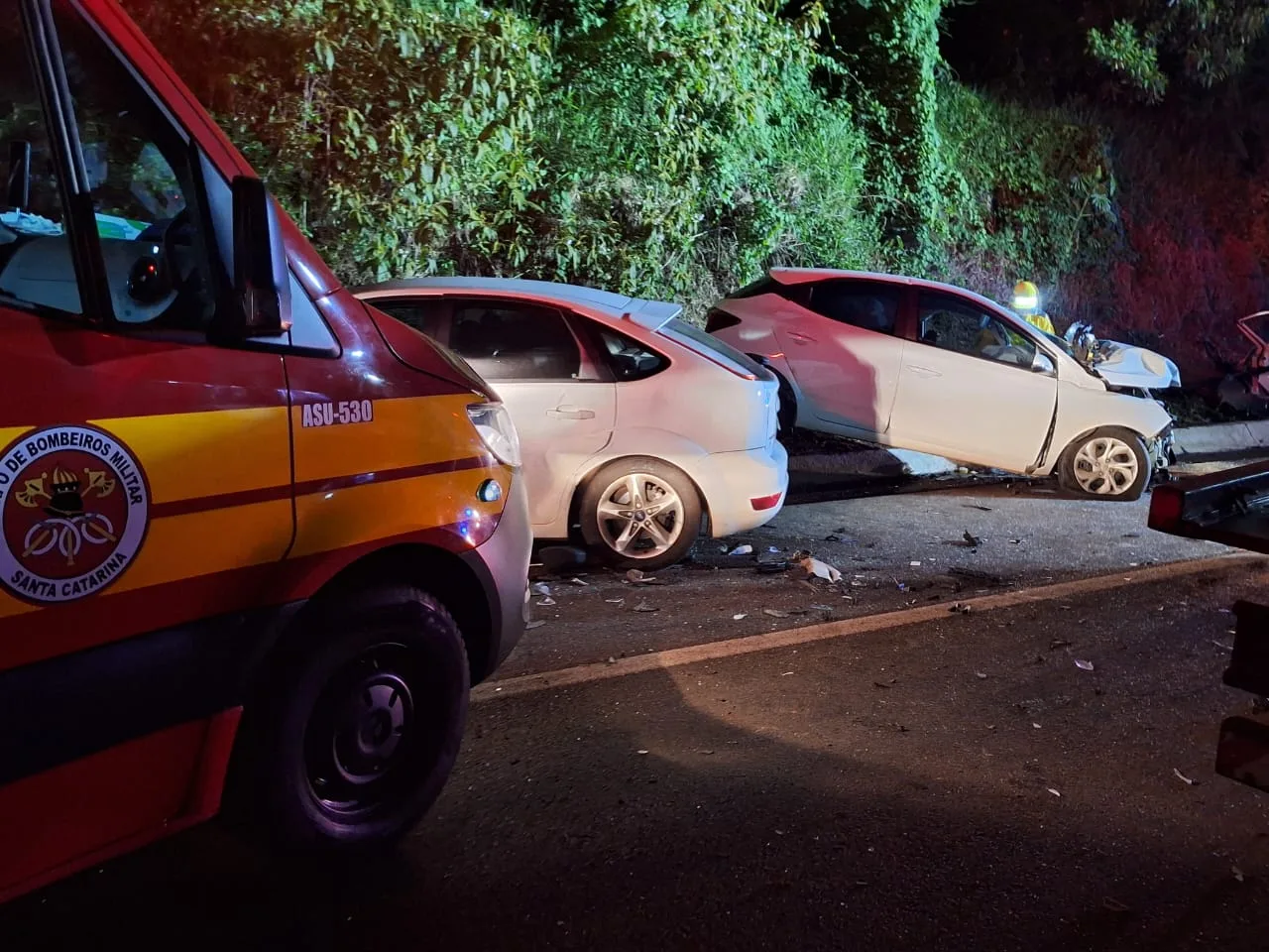 Dois jovens morrem e outros três ficam feridos em sequência de acidentes na BR-282 em SC
