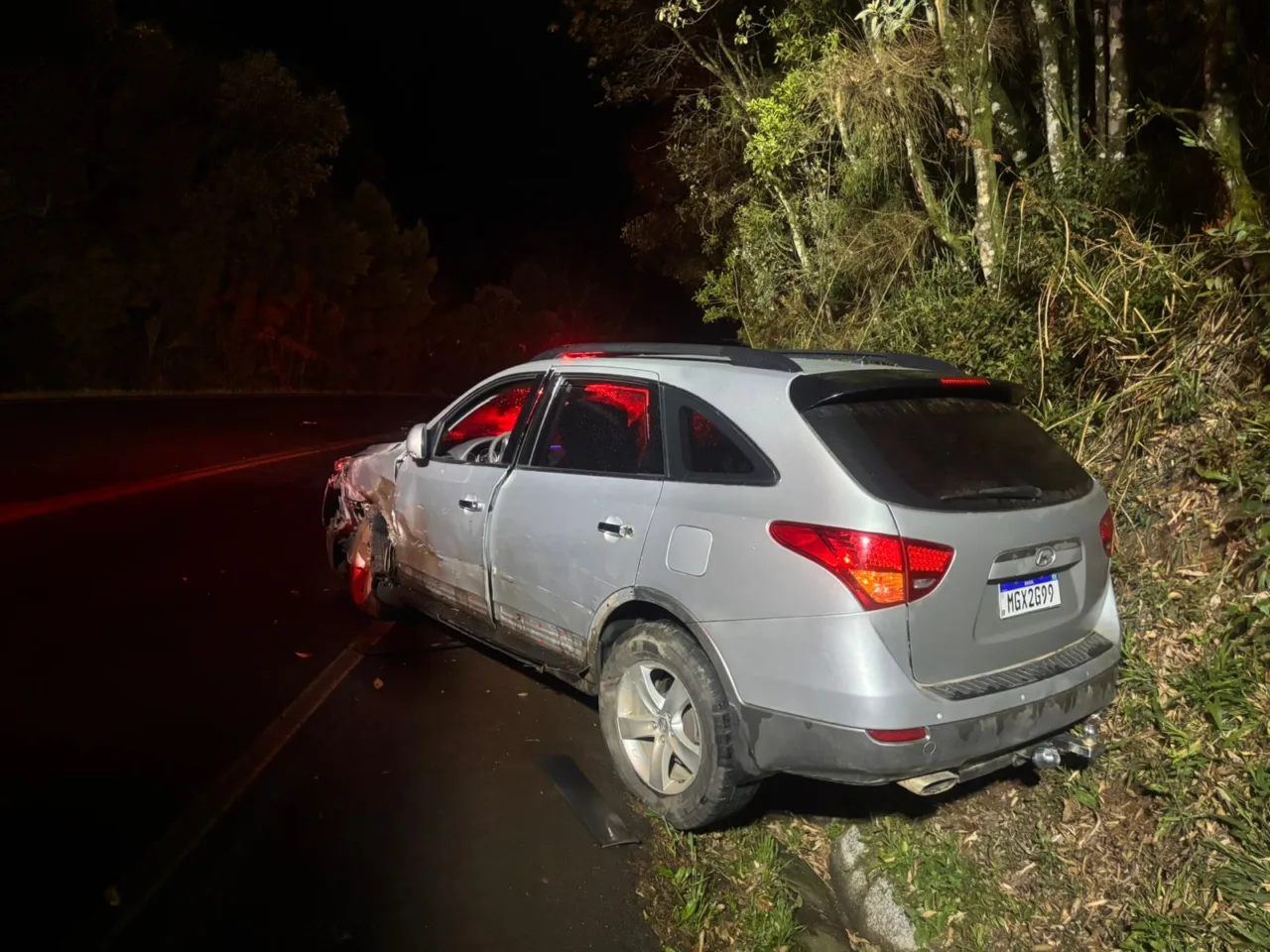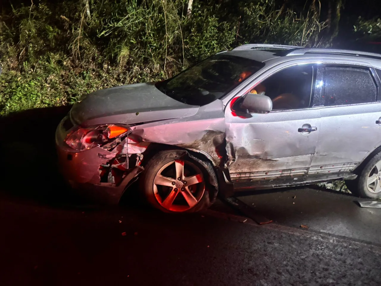 Uma colisão frontal entre dois veículos deixou uma gestante ferida na noite deste domingo (26) na BR-282, em Catanduvas. O acidente ocorreu por volta das 19h10 e envolveu um Hyundai Veracruz e um Volkswagen Gol.