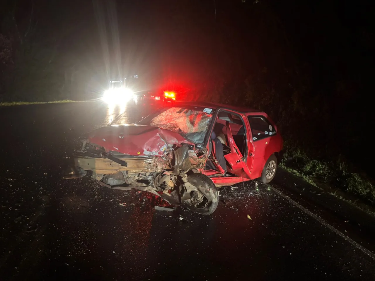 Colisão frontal envolveu dois veículos e deixou uma gestante ferida na noite de domingo (26) na BR-282, em Catanduvas