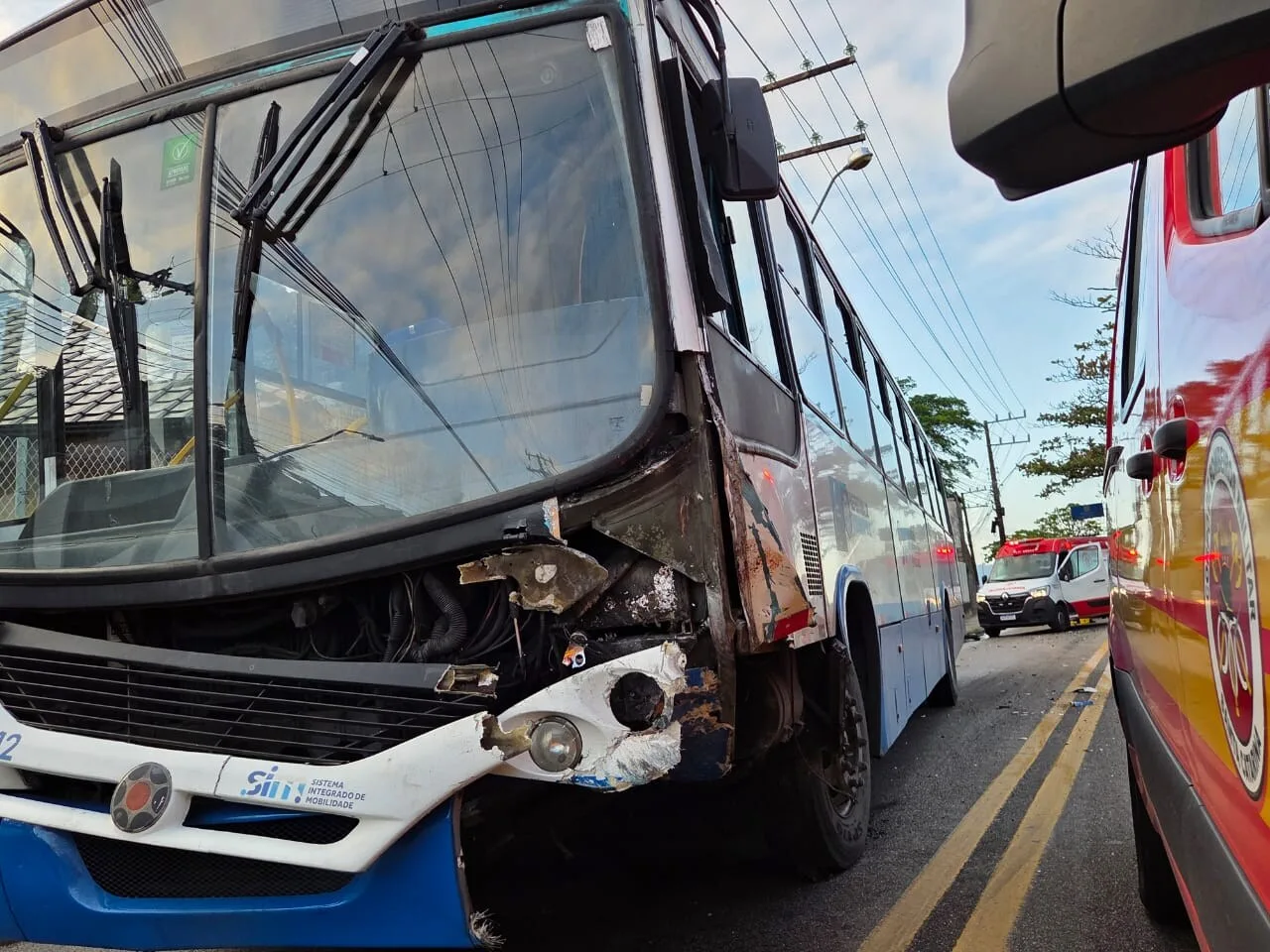 No ônibus, não houve vítimas, apenas danos no veículo.