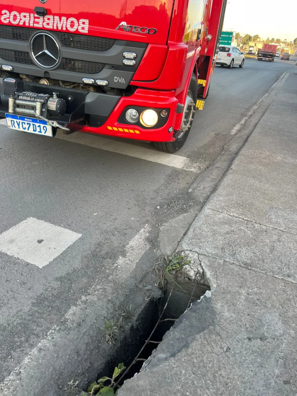 Após a ocorrência, a guarnição ABTR-206 permaneceu no local para sinalizar a boca de lobo e evitar novos acidentes, já que as grades quebradas representavam risco para pedestres e veículos que passam pela rodovia.
