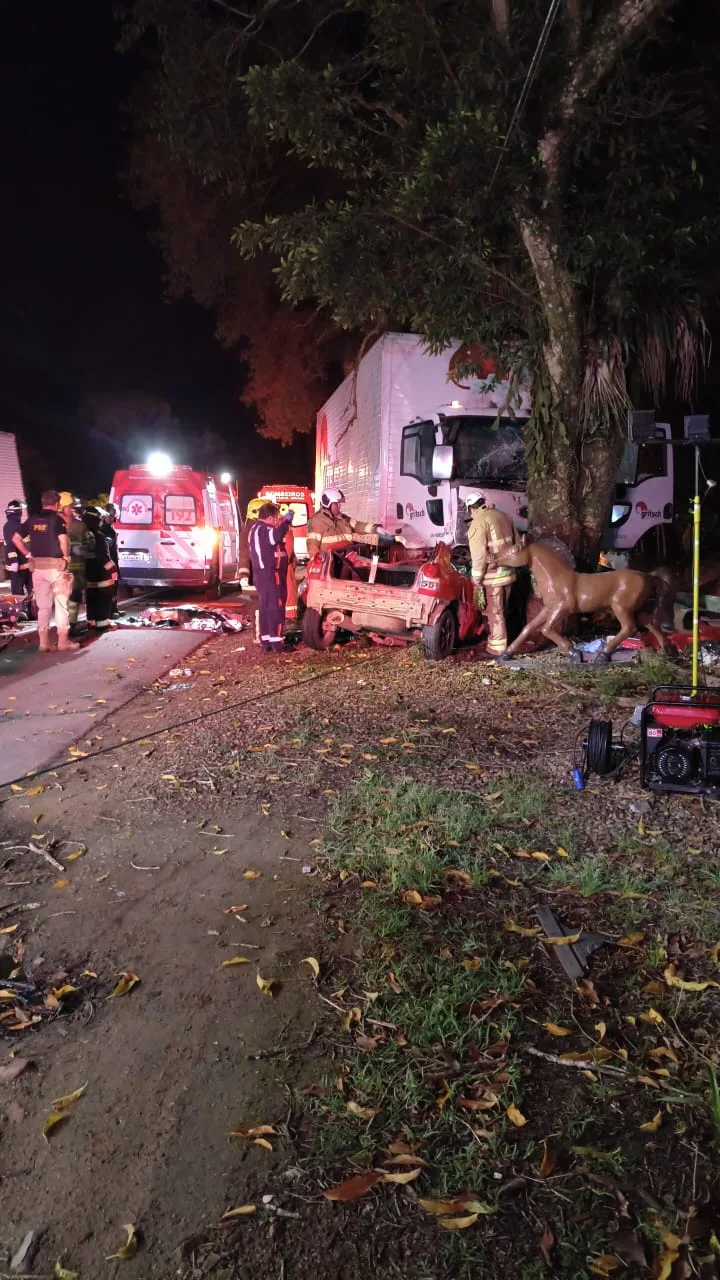 Segundo os bombeiros, quando as equipes chegaram ao local, o cenário era de grande destruição, com o automóvel totalmente danificado. As vítimas já estavam presas às ferragens, e o resgate demandou horas de trabalho até a retirada dos corpos.
