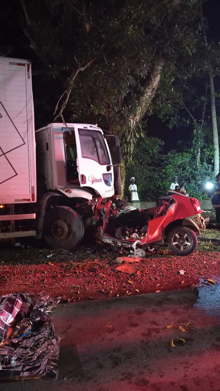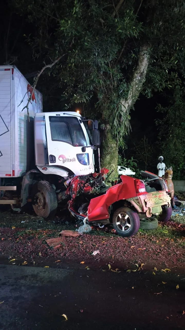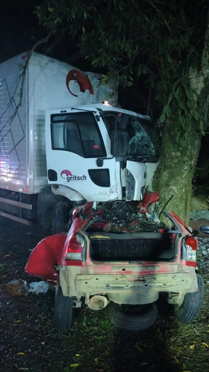 Imagens fortes! Grave acidente na BR-470 em SC deixa carro ‘irreconhecível’ e três mortos