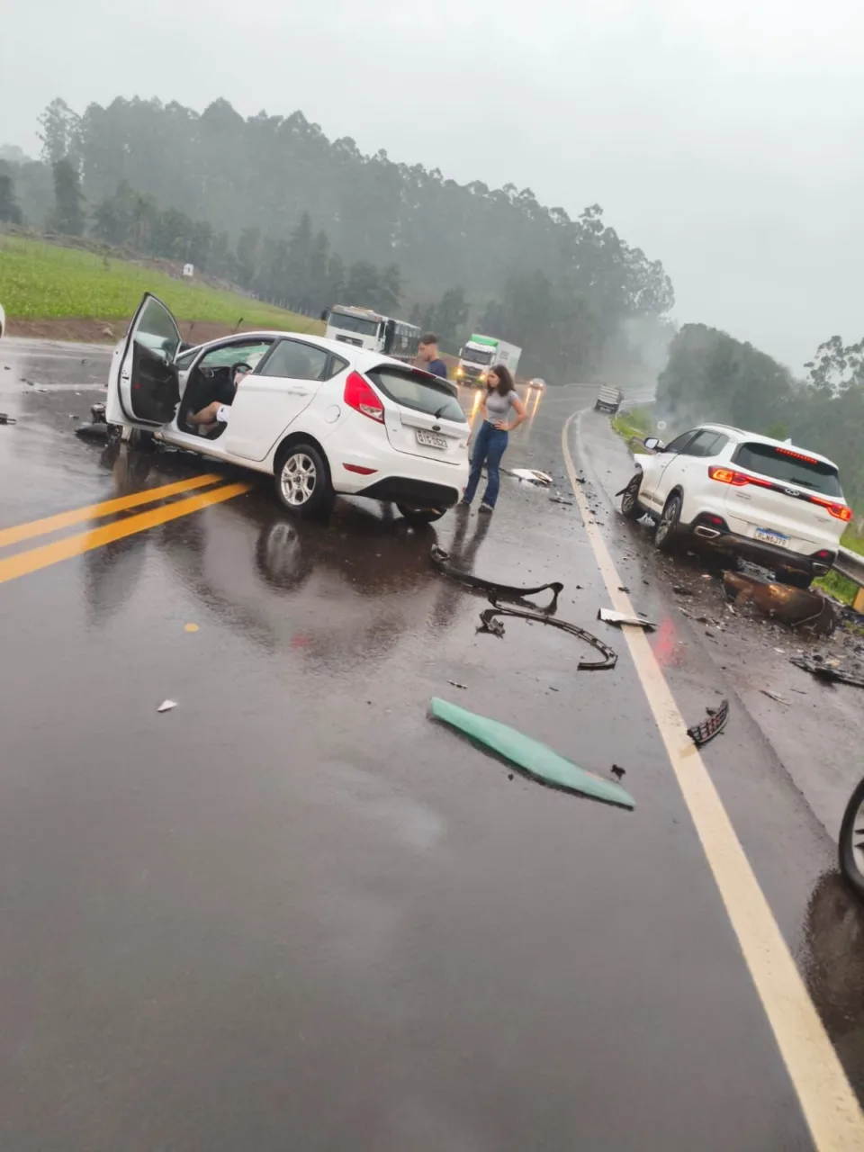 De acordo com as informações do Corpo de Bombeiros (CBMSC), a colisão envolveu um Chevrolet Celta e um Ford Fiesta. Com o impacto, os veículos ficaram bastante danificados, e as vítimas precisaram de atendimento médico.