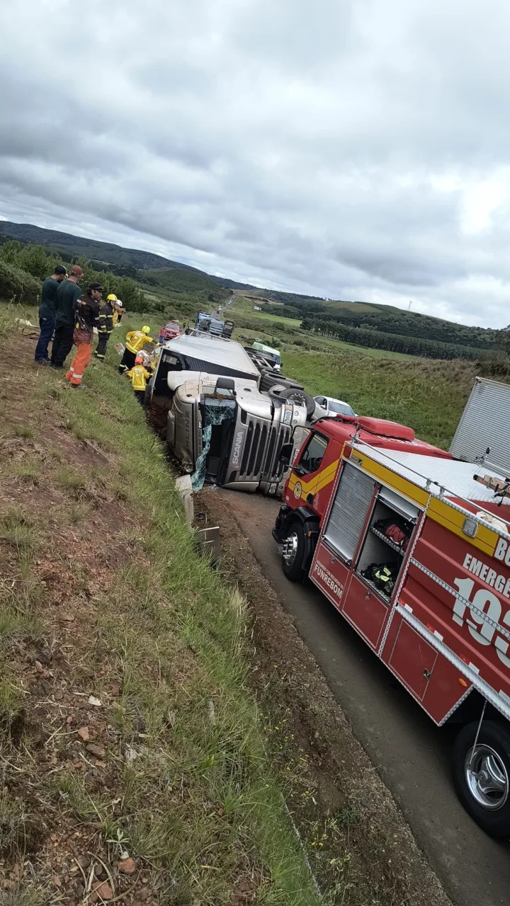 Um motorista morreu após o caminhão que conduzia sair da pista e tombar na BR-153, na tarde de quarta-feira (10), por volta das 13h27, no km 09 da rodovia, em Água Doce, no Oeste de Santa Catarina. O veículo, uma Scania R420 carregada com conjuntos de ar-condicionado, tombou às margens da estrada. Segundo o Corpo de Bombeiros Militar (CBMSC).