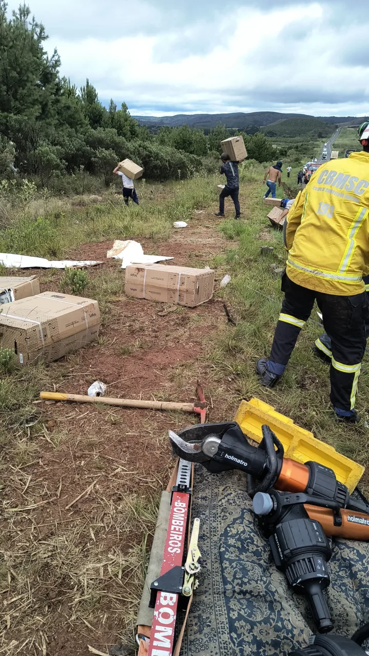 Quando as equipes de resgate chegaram ao local, encontraram a Scania, tombada e parte da via parcialmente bloqueada pela carga espalhada. Os bombeiros realizaram o isolamento da área, estabilizaram o caminhão e iniciaram o resgate, mas o motorista já estava morto no local, após a retirada das ferragens, o corpo foi deixado aos cuidados da Polícia Científica.