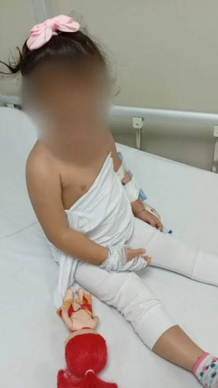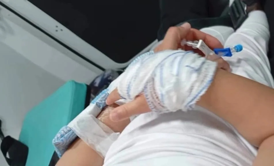 A agressão gerou uma queimadura grande e rompeu a pela de toda a palma da mão da criança — que foi encaminhada para o Hospital Pequeno Anjo para atendimento médico.