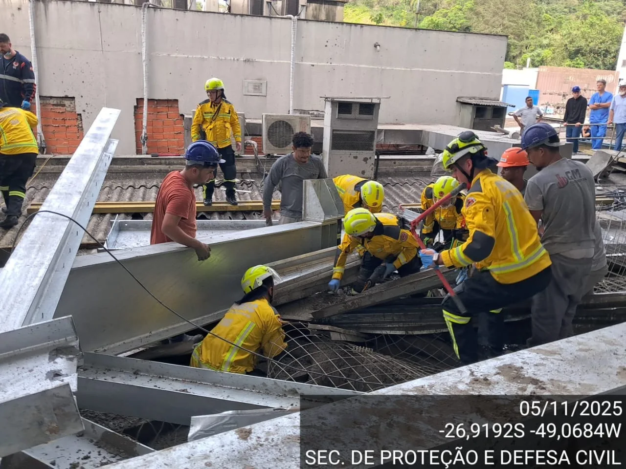 De acordo com o Corpo de Bombeiros Militar de Santa Catarina (CBMSC), o acidente ocorreu por volta das 9h, quando a estrutura utilizada na montagem de uma laje lateral cedeu. No momento do colapso, sete trabalhadores estavam na área atingida. Cinco sofreram a queda, enquanto dois conseguiram permanecer suspensos pela linha de vida — um sistema de segurança usado para evitar quedas em altura.
