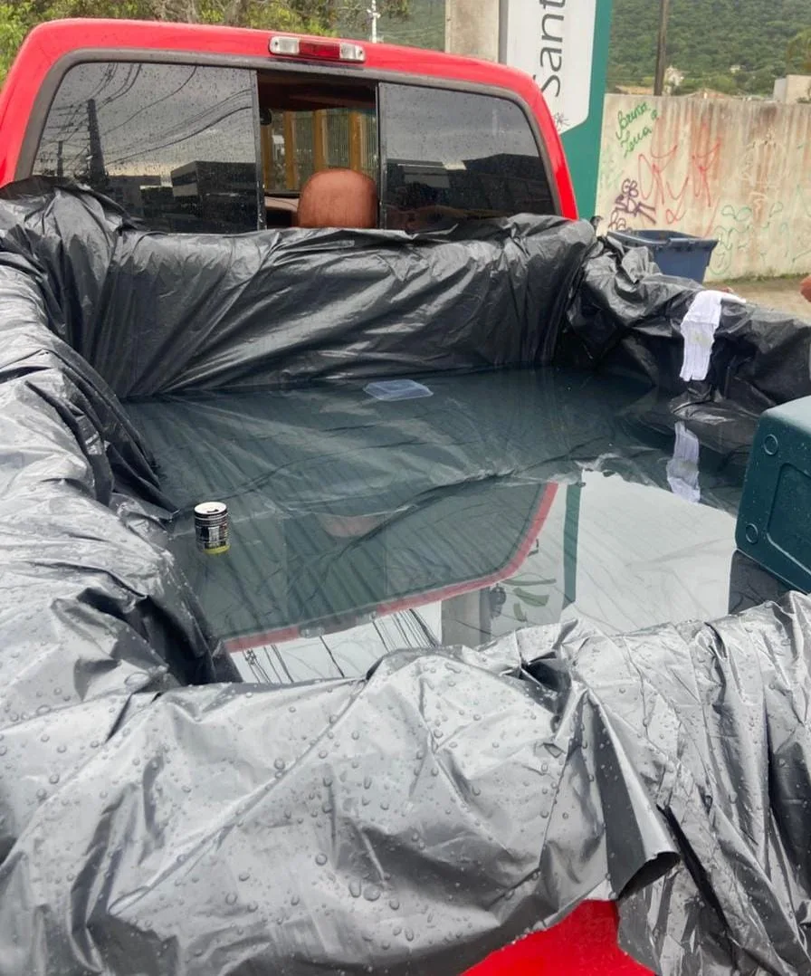 Condutor é flagrado transportando passageiros em piscina improvisada na caçamba de picape em Florianópolis