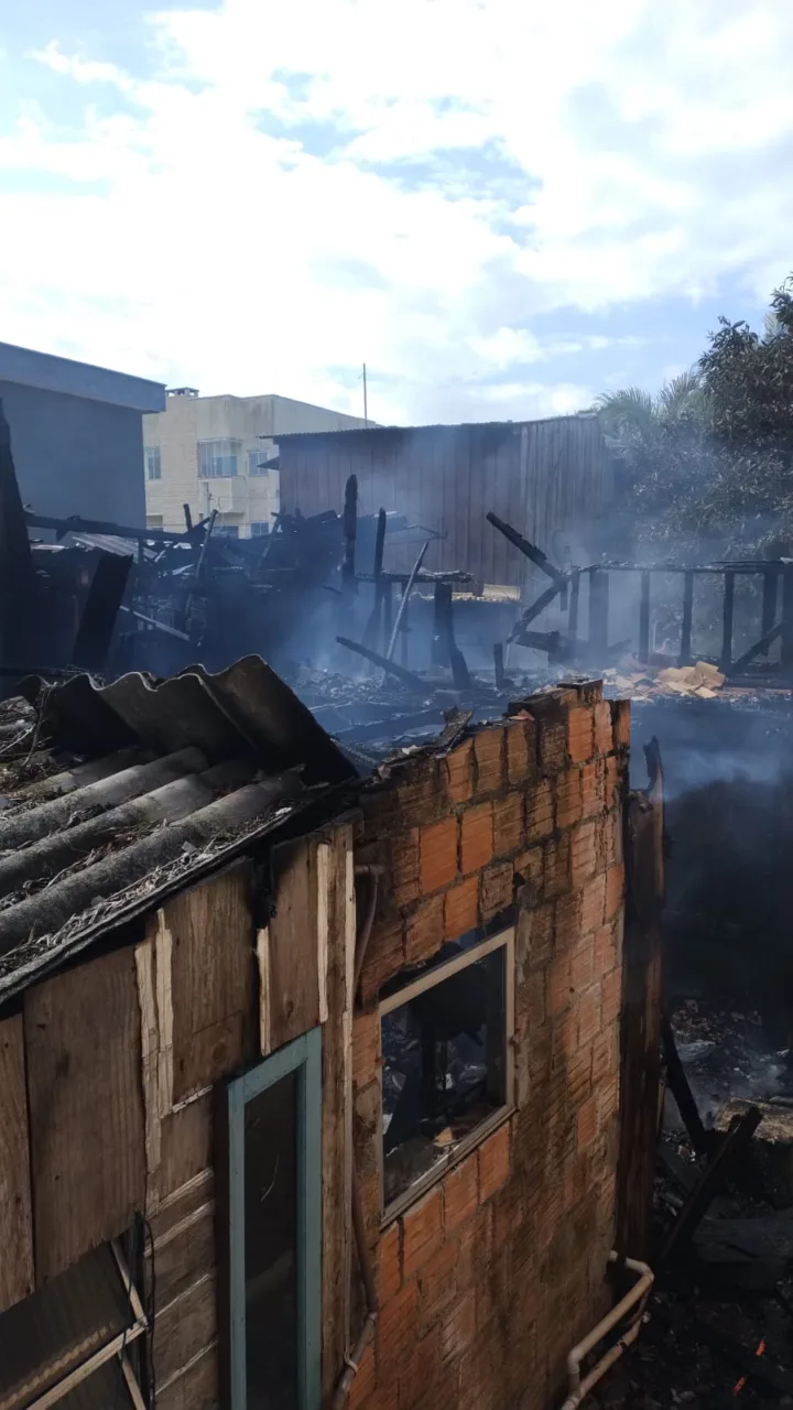 Um incêndio consumiu totalmente uma casa de madeira no início da tarde deste domingo (19), por volta das 14h, no bairro Ingleses do Rio Vermelho, em Florianópolis. O fogo teria começado enquanto a moradora tomava banho e, devido à estrutura da residência, as chamas se espalharam rapidamente, destruindo o imóvel em poucos minutos.