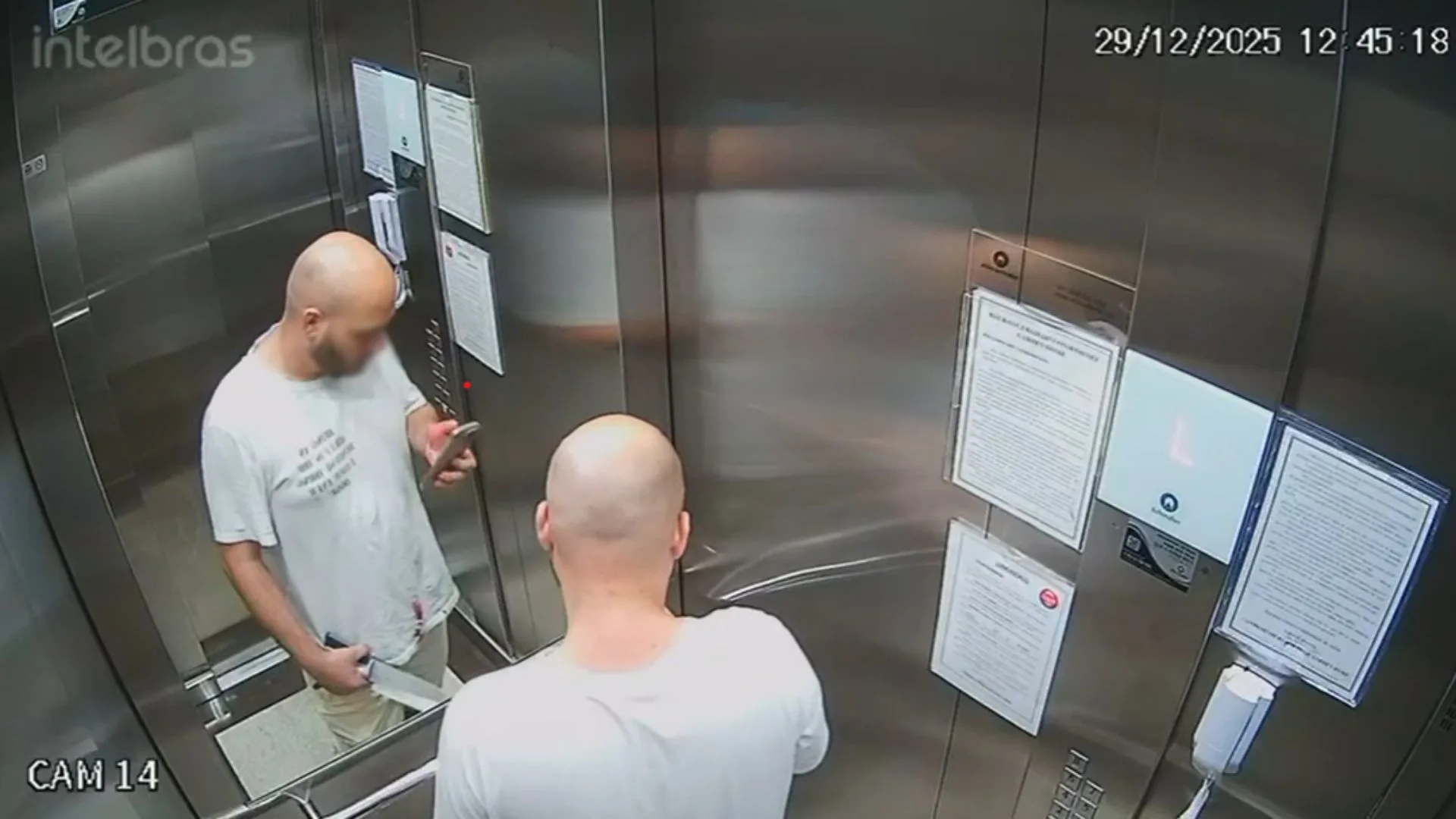 Imagens de câmeras de segurança mostram o principal suspeito da morte de um empresário de 37 anos, ocorrida na tarde de segunda-feira (29), em Camboriú, no Litoral Norte de Santa Catarina. Nos registros, o homem aparece carregando duas facas, com a camiseta aparentemente suja de sangue, enquanto manuseia um aparelho celular dentro do prédio onde o crime ocorreu.