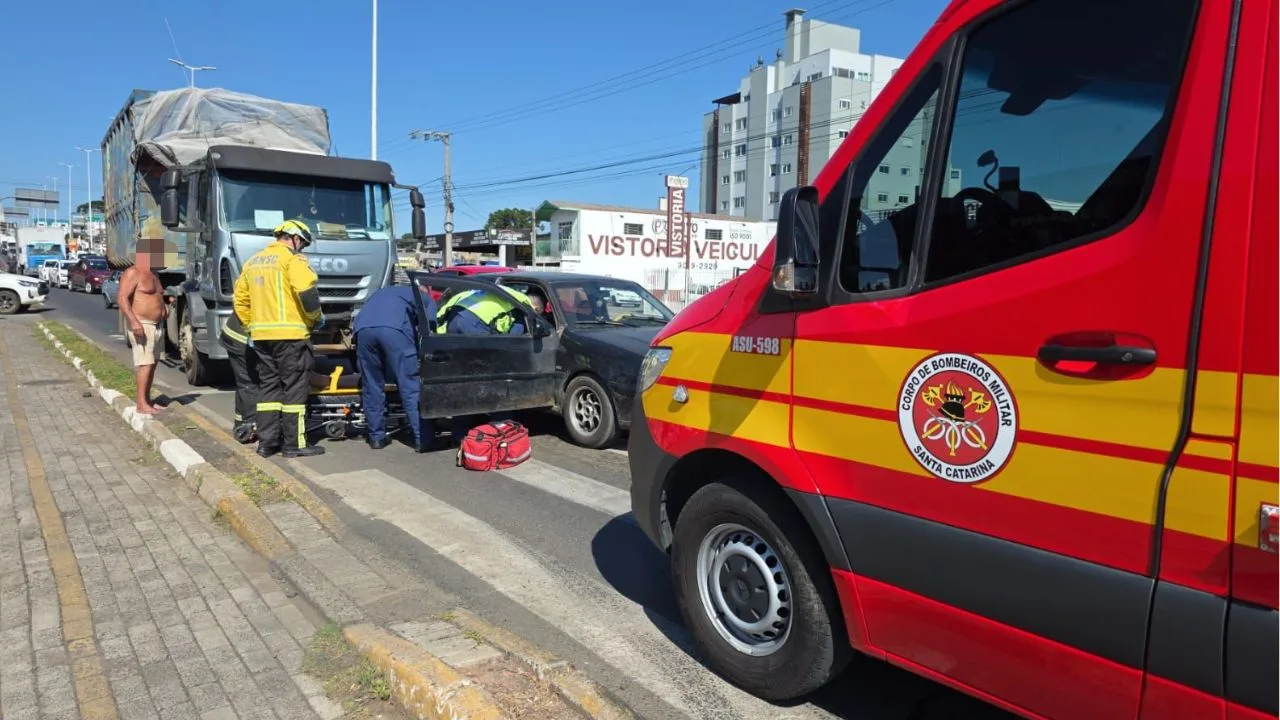 O motorista ficou preso dentro do veículo