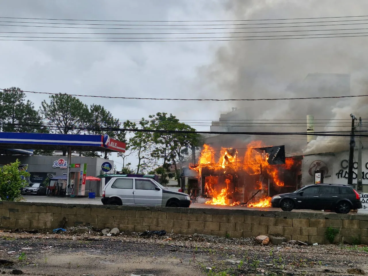 Fogo atingiu o Shopping ViaCatarina, em Palhoça, na madrugada desta segunda-feira (10), por volta das 04h30