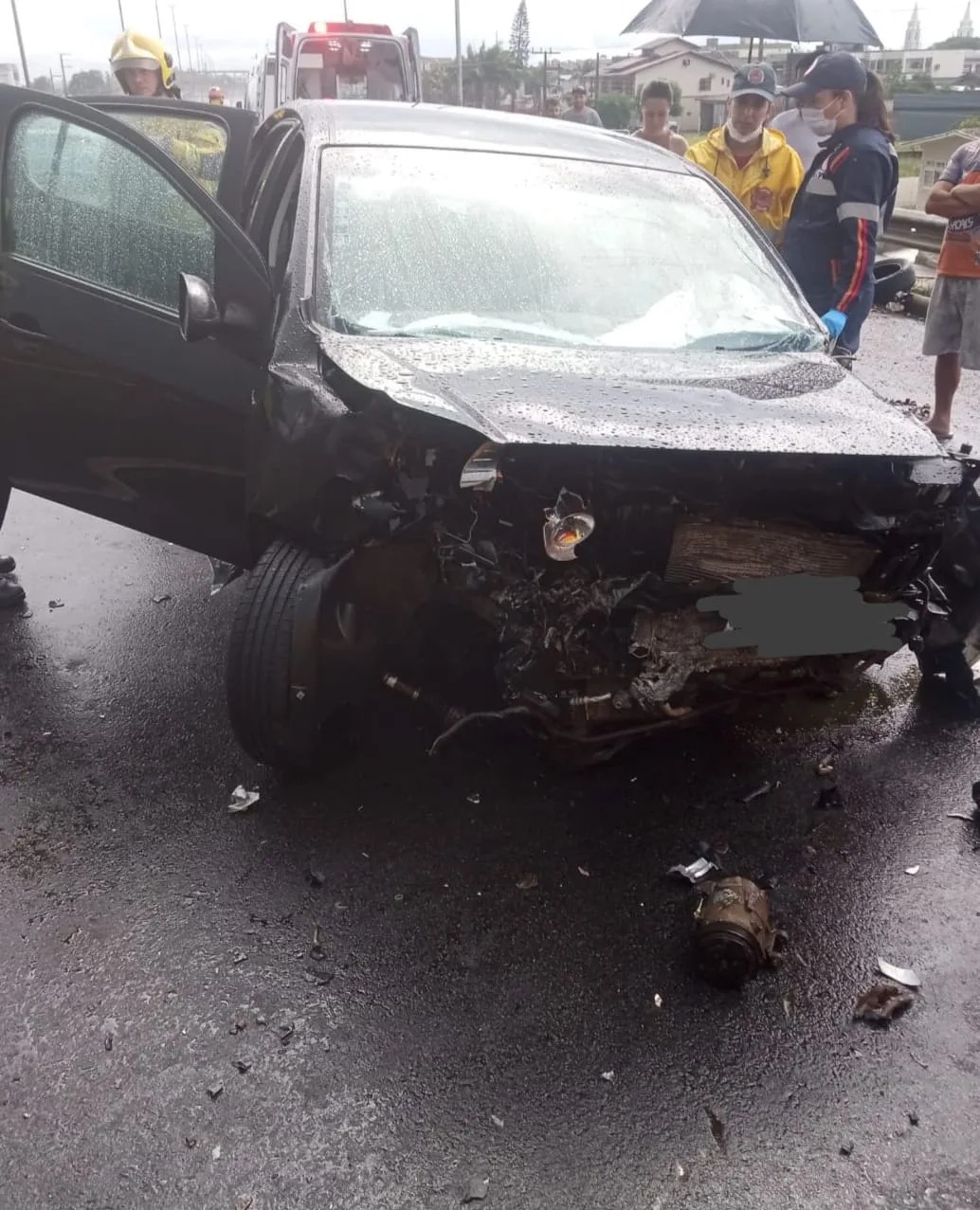 Já no terceiro veículo, um Fiesta Sedan, o condutor estava consciente e orientado, porém preso às ferragens. Ele apresentava fraturas fechadas nos membros inferiores, sendo uma no fêmur esquerdo e outra no terço médio do membro inferior direito, além de suspeita de fratura na pelve e no membro superior direito.
