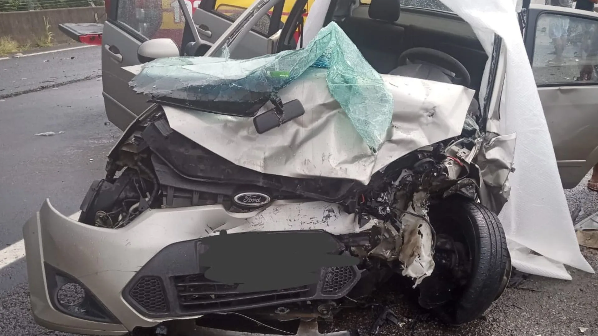 Já no terceiro veículo, um Fiesta Sedan, o condutor estava consciente e orientado, porém preso às ferragens. Ele apresentava fraturas fechadas nos membros inferiores, sendo uma no fêmur esquerdo e outra no terço médio do membro inferior direito, além de suspeita de fratura na pelve e no membro superior direito.
