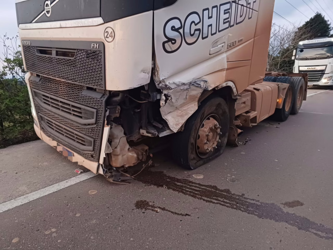 Caminhoneiro saiu ileso e permaneceu no local do acidente