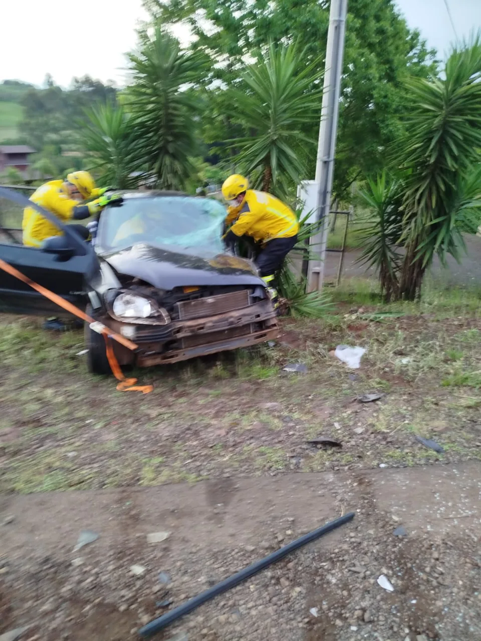O Corpo de Bombeiros Militar de Maravilha precisou estabilizar o veículo e abrir uma “terceira porta” para criar espaço e realizar o resgate com segurança. Após o atendimento, o motorista foi conduzido ao Hospital São José de Maravilha sob monitoramento.