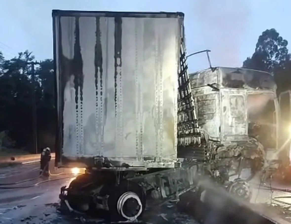 O caminhão pegou fogo logo após subir a mureta central e ficou parcialmente destruído. A cabine do veículo ficou atravessada sobre a estrutura que divide as pistas, na altura do Morro dos Cavalos, enquanto o baú ficou junto à mureta. Ainda não há detalhes sobre a ocorrência ou sobre o estado de saúde do motorista.